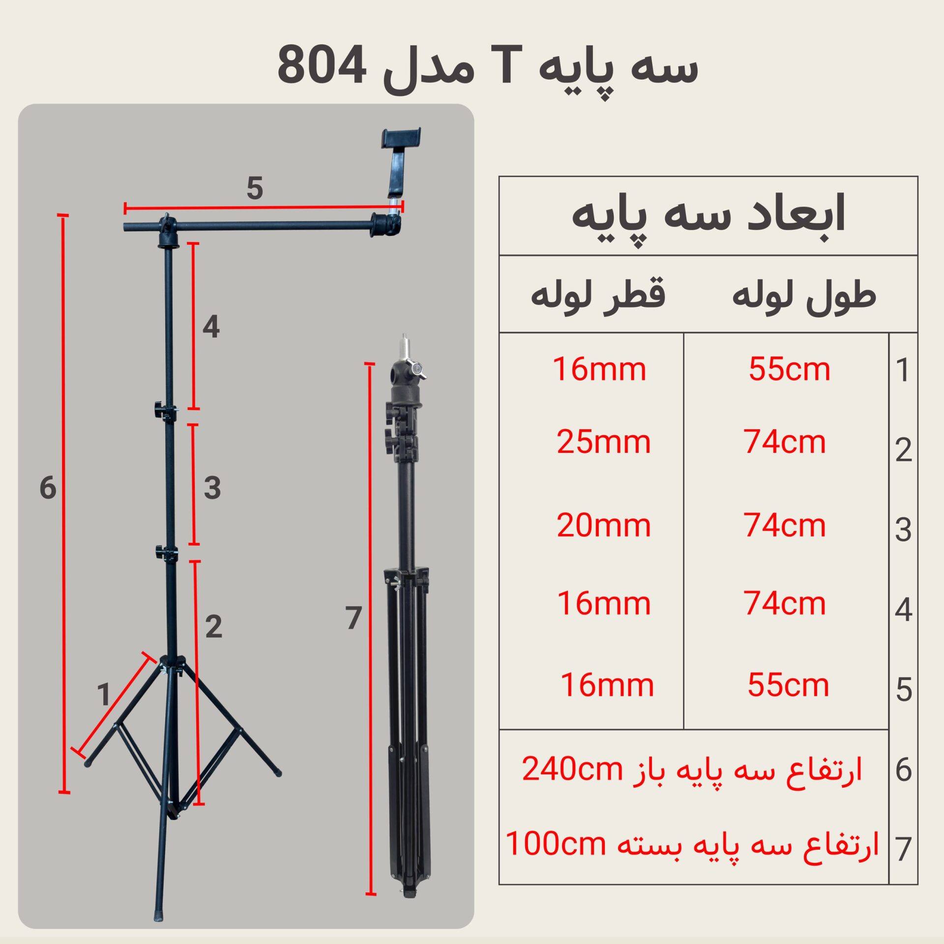 | ارتفاع سه پایه باز | 240cm |